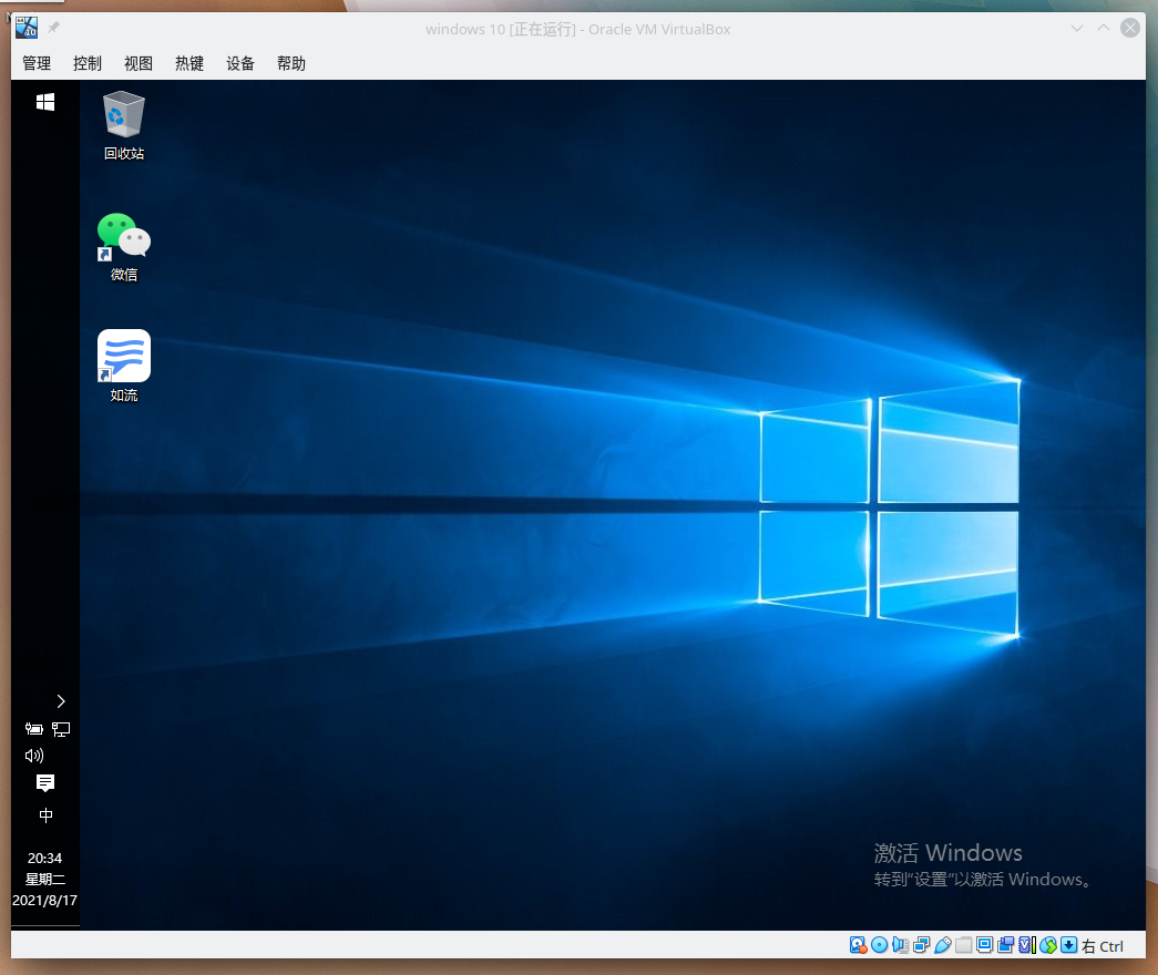 解决方法是直接上虚拟机,我用的 VirtualBox 安装了一个 Windows 10。实际体验还不错,没有想象中的卡顿出现。由于在虚拟机里,还可以设置资源占用,防止出现某聊天软件占用大量内存的情况。